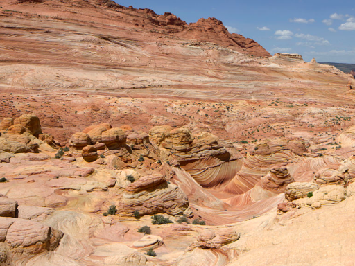 Waves Valley: showcases a fascinating world sculpted by millions of years of wind, water, and time, shaping sandstone into extraordinary formations. The complex layers of rocks in Waves Valley were created by massive sand dunes that began to deposit around 150 million years ago during the Jurassic period. Over time, these dunes were repeatedly covered by layers of red sand, saturated with underground water. The minerals in the water gradually cemented the sand, turning it into sandstone, and forming the distinctive, layered structure that we see today.