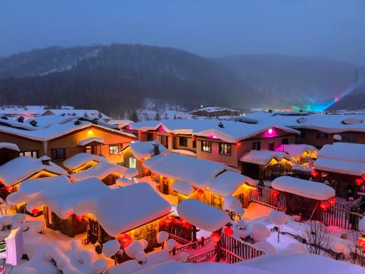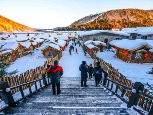 - China Snow Village(including eco-friendly scenic vehicles): Stroll along Snow Rhythm Street,admiring the charming North- eastern-style wooden houses.See frozen pears and persim- mons,unique to the Northeast.