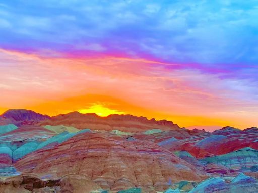- Rainbow Mountains – Usually refer to Zhangye Danxia National Geopark in Gansu, northwest China, a protected area of vividly colored, layered sandstone hills and cliffs often called one of the most spectacular landscapes in the country.